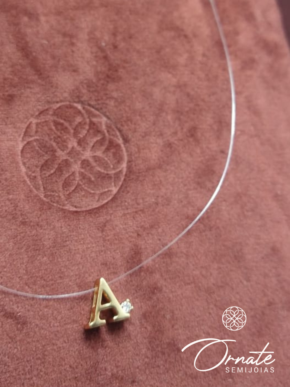 Colar choker Letra com Fio Invisível e uma zircônia branca.