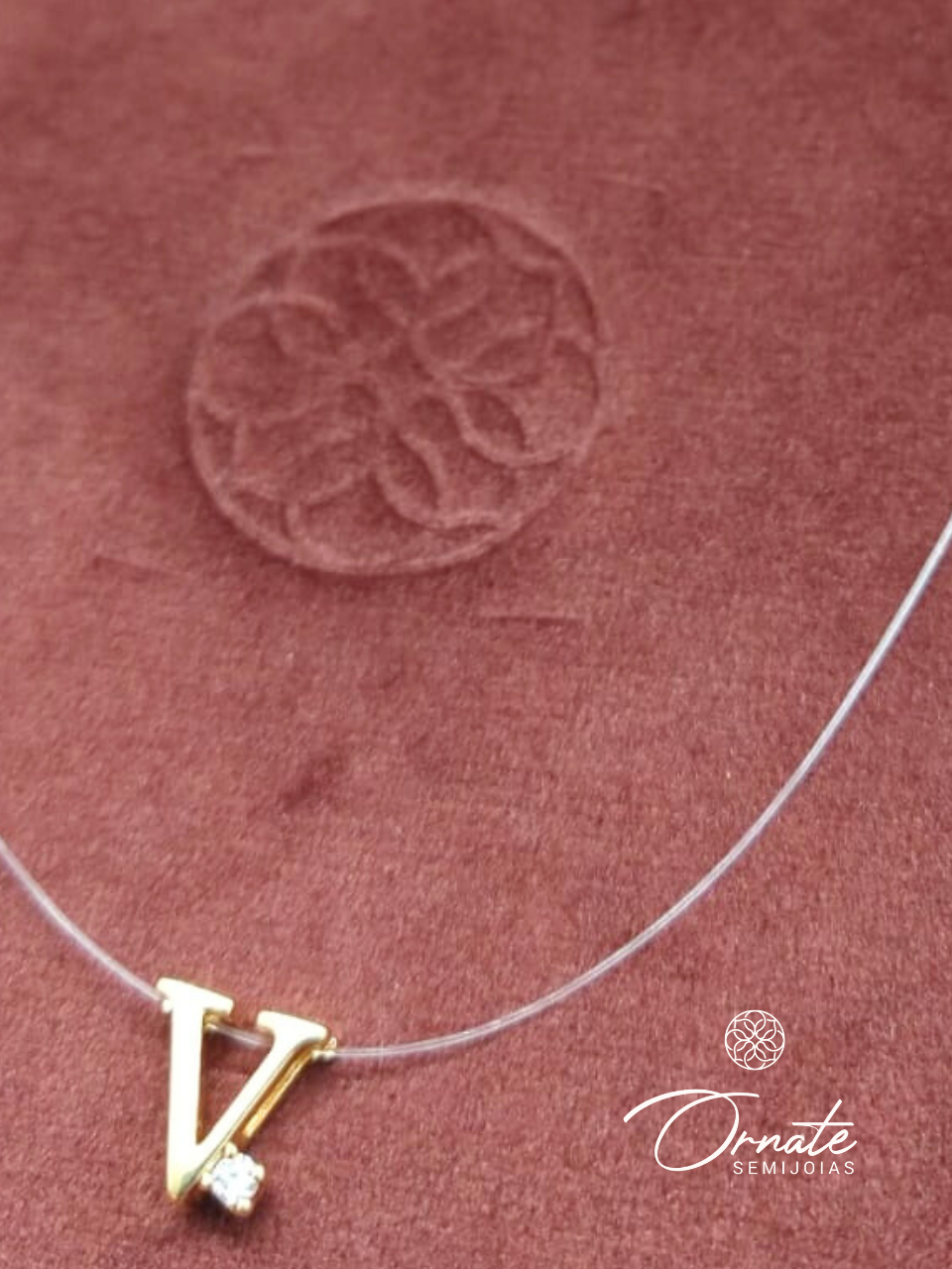 Colar choker Letra com Fio Invisível e uma zircônia branca.