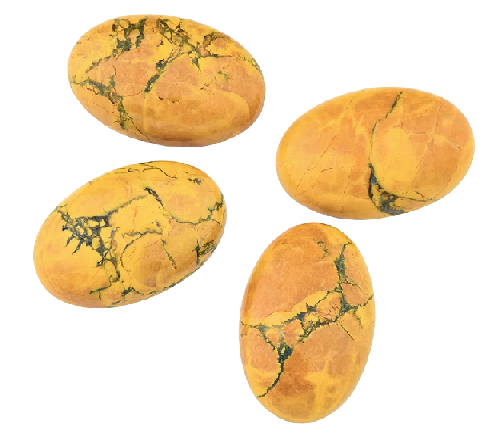 A Howlita natural é branca e devido sua porosidade é facilmente tingida em amarelo e salmão.